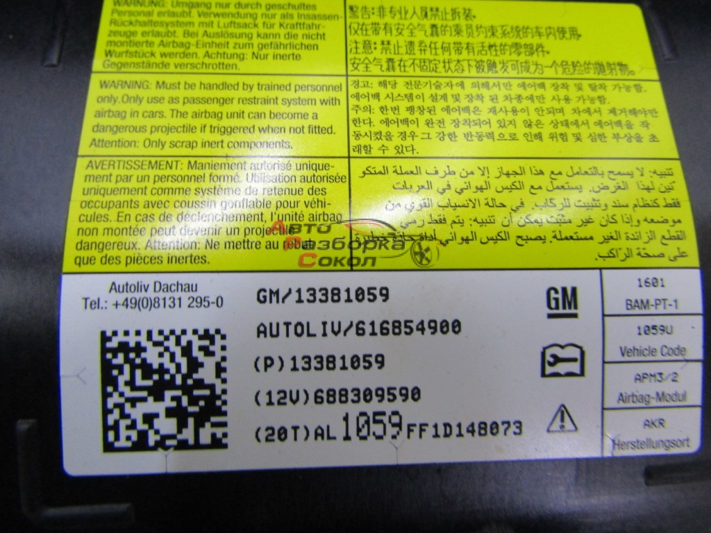 "Авто Разборка Сокол" предлагает Подушка безопасности пассажирская (в торпедо) Chevrolet Cruze 2009-2016 252874 13381059, с оригинальным номером 13381059, который числится на нашем складе по внутренннему номеру запчасти № 252874 Состояние данной запчасти - б.у.. Данная запчасть подходит для Chevrolet Cruze 2009-2016 Кузов внутри Подушка безопасности пассажирская (в торпедо) с двигателем 1.8 16v F18D4 тип двигателя БЕНЗИН