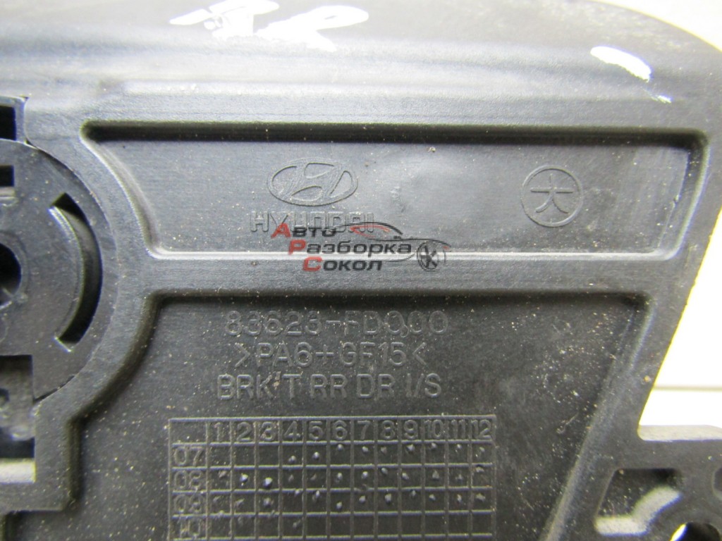 "Авто Разборка Сокол" предлагает Ручка двери внутренняя правая Hyundai i30 2007-2012 248409 826202L000XP, с оригинальным номером 826202L000XP, который числится на нашем складе по внутренннему номеру запчасти № 248409 Состояние данной запчасти - б.у.. Данная запчасть подходит для Hyundai i30 2007-2012 Кузов внутри Ручка двери внутренняя правая с двигателем 1.4 16v G4FA тип двигателя БЕНЗИН