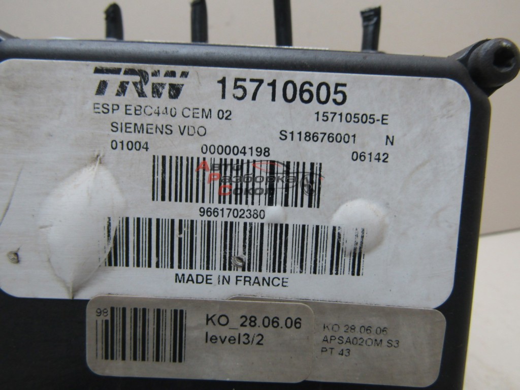 "Авто Разборка Сокол" предлагает Блок ABS (насос) Peugeot 407 2004-2010 251510 4541X3, с оригинальным номером 4541X3, который числится на нашем складе по внутренннему номеру запчасти № 251510 Состояние данной запчасти - б.у.. Данная запчасть подходит для Peugeot 407 2004-2010 Электрооснащение Блок ABS (насос) с двигателем 1.8 16V EW7A тип двигателя БЕНЗИН