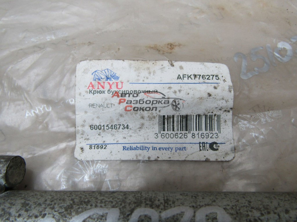 "Авто Разборка Сокол" предлагает Крюк буксировочный Renault Logan 2005-2014 251079 6001546734, с оригинальным номером 6001546734, который числится на нашем складе по внутренннему номеру запчасти № 251079 Состояние данной запчасти - б.у.. Данная запчасть подходит для Renault Logan 2005-2014 Кузов наружные элементы Крюк буксировочный