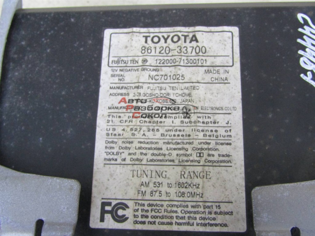 "Авто Разборка Сокол" предлагает Магнитола Toyota Camry CV3 2001-2006 244487 8612033700, с оригинальным номером 8612033700, который числится на нашем складе по внутренннему номеру запчасти № 244487 Состояние данной запчасти - б.у.. Данная запчасть подходит для Toyota Camry CV3 2001-2006 Сопутствующие товары Магнитола с двигателем 3.0 1MZFE тип двигателя БЕНЗИН